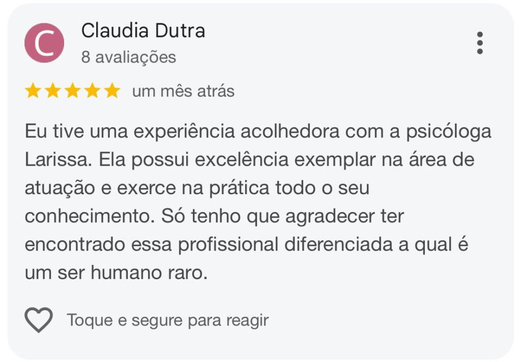 O Conselho Federal de Psicologia não permite a divulgaçāo de valores em ambientes públicos. Para saber os valores e agendar sua sessāo, entre em contato pelo WhatsApp.